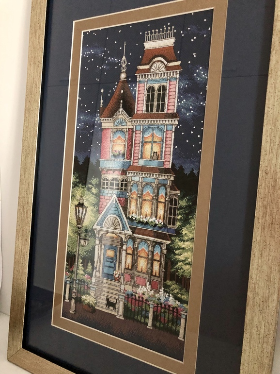 Удивительно, но дом будто объемный, смотрю и кажется, что он будто выступает из картины ) Здорово, очень здорово получилось! И труда, конечно, вложено не мало! ) Вы молодец, такую красоту сотворили )