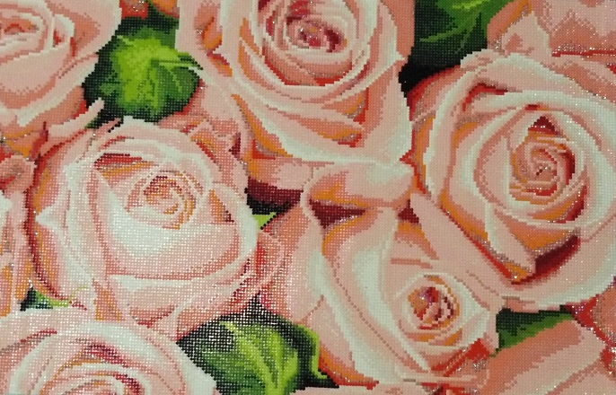 Это была любовь с первого взгляда!Увидела и поняла,что эти розы должны быть у меня.Размер готовой работы 125х45.Они огромные!