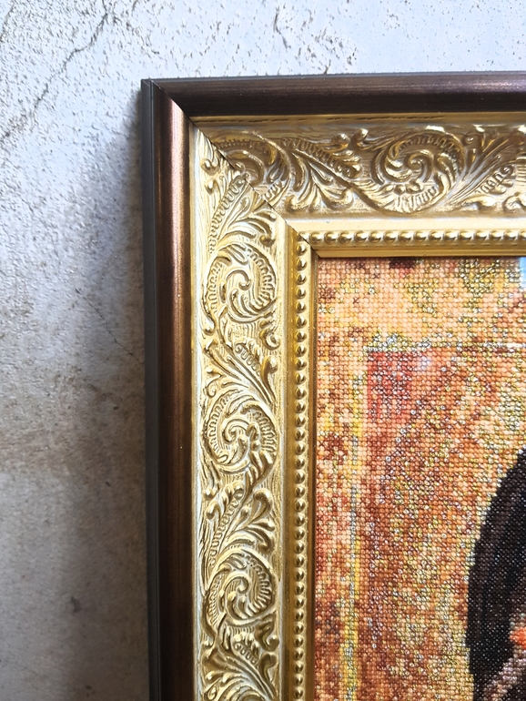 Вышивать было очень тяжело, очень медленно шло из-за сложности схемы, но до конца июля мне позарез надо было успеть, и я успела! Отвезла работу в Самару, там оформила и преподнесла маме. Ей понравилось. )) И я очень рада, что ее вышила. В интернете далеко не все вышивавшие ее в восторге от результата, но мне все нравится. Прямо очень-очень.))