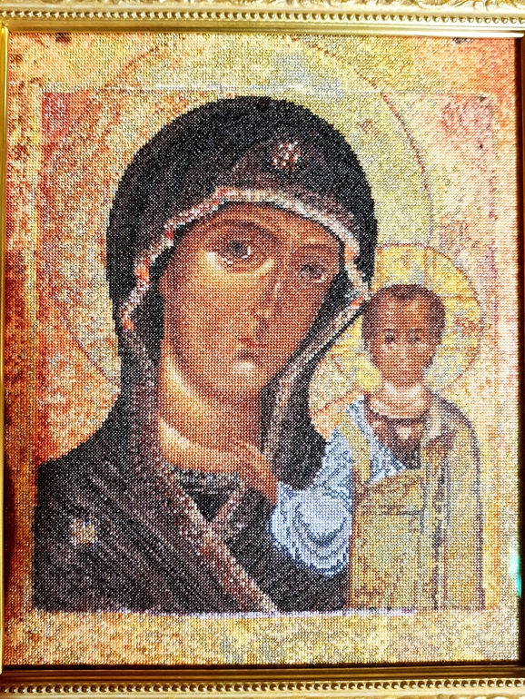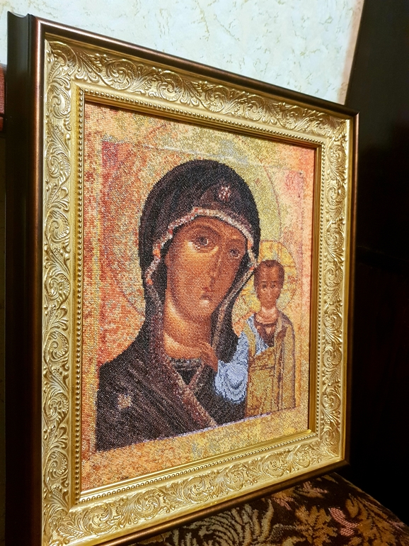 Вышивка крестомВсем привет! Вот наконец-то я съездила в отпуск, вернулась, разгребла накопившиеся завалы и готова похвастаться моей новой работой! Та-дам, это Thea Gouverneur, "Богоматерь Казанская". Несколько слов о работе и еще фотки под катом.