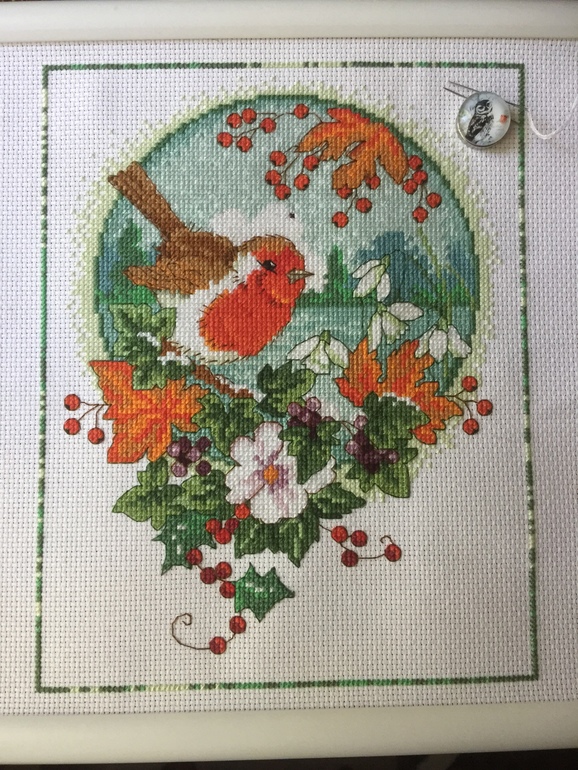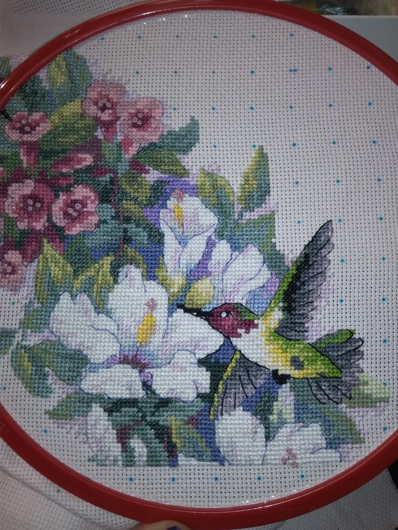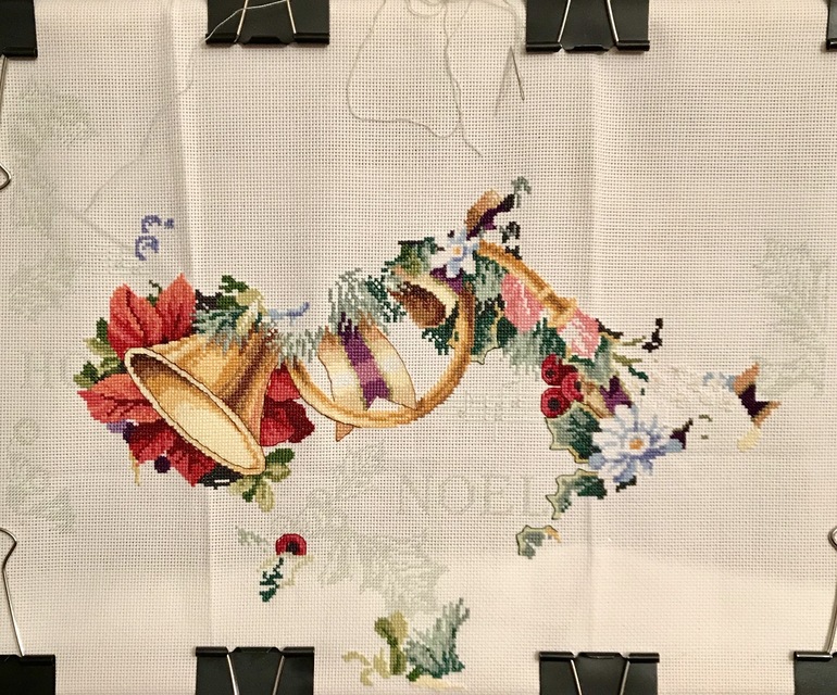 Добрый день. Вчера сидела до ночи, потом сфоткала и забыла выложить 😊 С утра бегаем с анализами, бассейн начинается и секции. Венок мой все ещё в начале пути. Хорошо вышивается фон в полкреста одной ниткой, но его почти не видно. А сам венок - мешанина цвета, идёт медленно. Хоть бы успеть к нг 😄