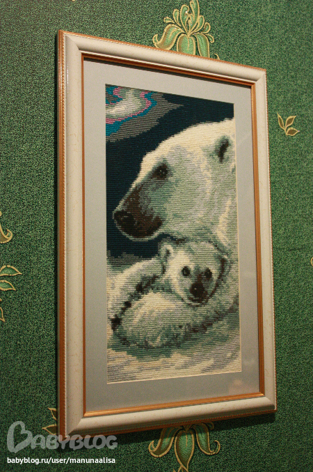 Номер 2 - Мишки на Севере. Это набор Риолис. Очень понравилось вышивать шерстью: получается оч объемно