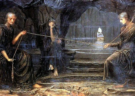 Платон был к мойрам немного поласковее и описывал их уже как достойных женщин с венками на головах, сидящих на высоких стульях, всех таких в белом. Все они, по его мнению, прядут на веретене необходимости, подпевая небесной музыке сфер, каждая о чем-то своем.