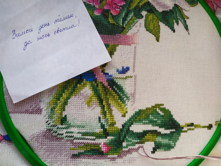 Привет))! В забеге буду вышивать Букет пионов и Рождественский домик. Обе работы вышиваю на Мурано 32 каунта.
