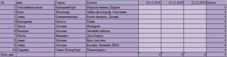 Игра "Вышивальный забег"Всем привет. Вот и наша стартовая табличка, проверяйте себя, вроде, никого не пропустила. Отчет номер 1 жду до завтра 21 декабря до 22.00 по Москве.