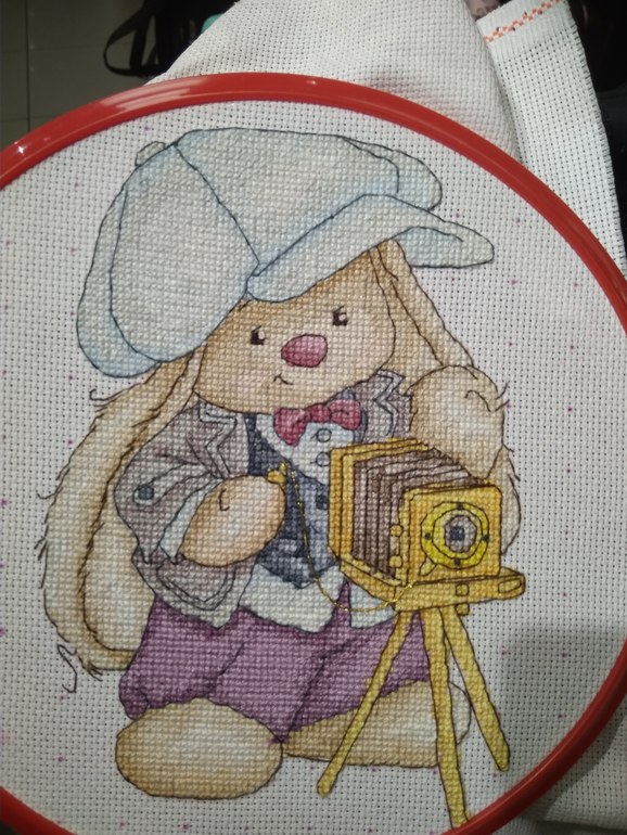 Сегодня закончила бэк и фрузелки на зайке и совсем чуточку Даму повышивала.