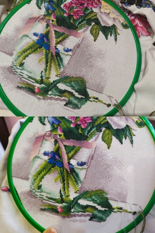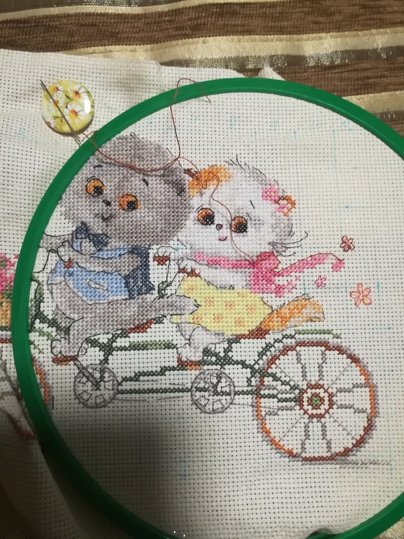Привет. У меня сегодня всего 113 крестиков с учётом процентов (сделала немного бэка и полукрестиков). Всё, что успела ночью наковырять. Дочке снова плохо, так что не до вышивки.