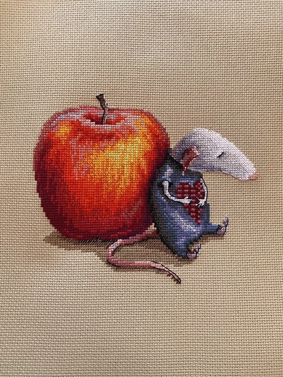 Набор от РТО мне подарила подруга на Новый год - мало, говорит тебе вышивальной работы, вышей мышонка для себя. Сказано - сделано! Два дня и мышь готов!