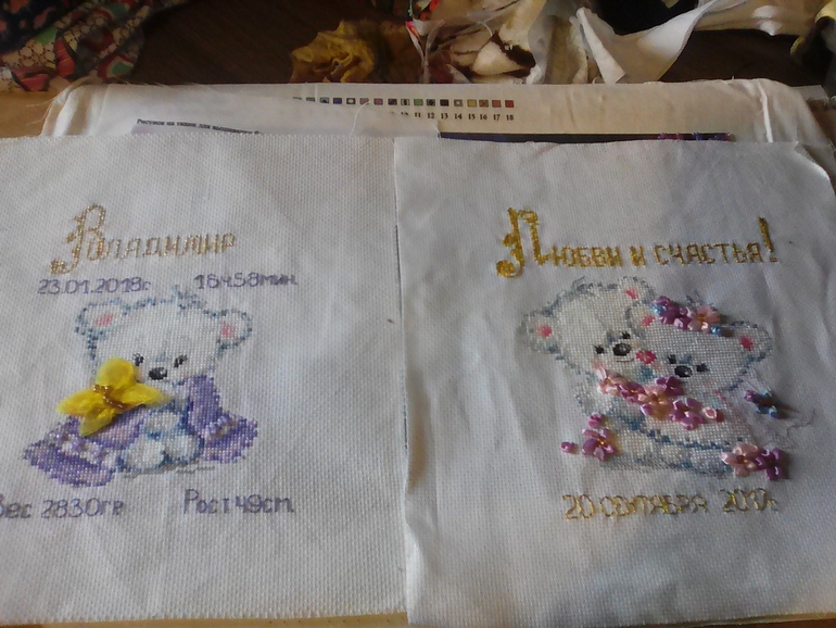 стало. А насчёт мишек- вышила дочери на свадьбу и на внука метрику