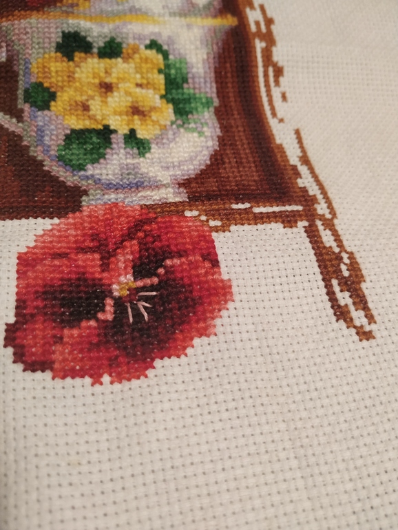 По вышивке продвижения минимальны. Я пытаюсь правильно организовать свой день, но не всегда выходит хорошо... Дошила одну виолу и поковыряла саму полку коричневым немного - вот и все успехи.
