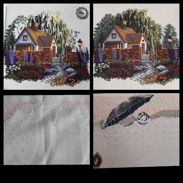 Всем привет! Какая у нас на заставке собралась компания милых девочек! Загляденье! Домик не закончила, хотя могла бы. Просто уехала к маме и, как оказалось, взяла с собой не все нитки. Осталось примерно 500 крестиков дошить и немного бэка. Ну и "Непогода" в этот раз за неделю существенно продвинулась.
