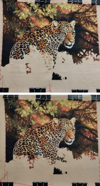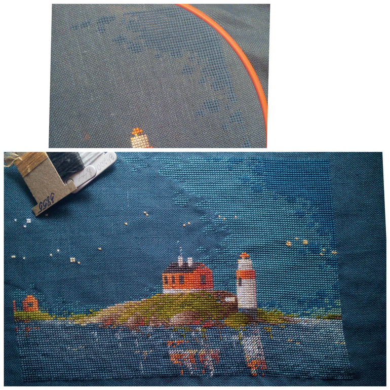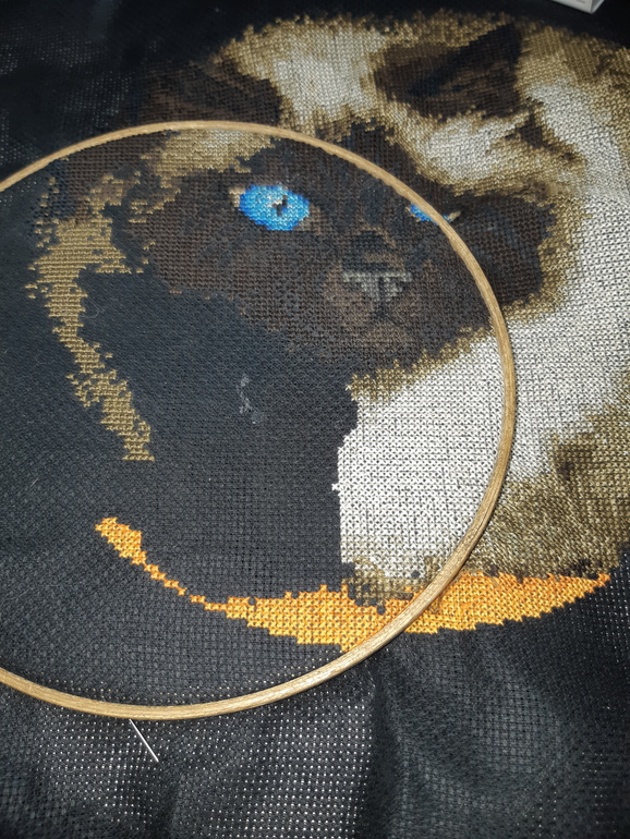 Из-за ошибки сейчас медленно ползу... Стараюсь её исправить, а точнее ищу участок где можно без проблем это сделать. Пока у меня вышивка не сходится на 1 столбец
