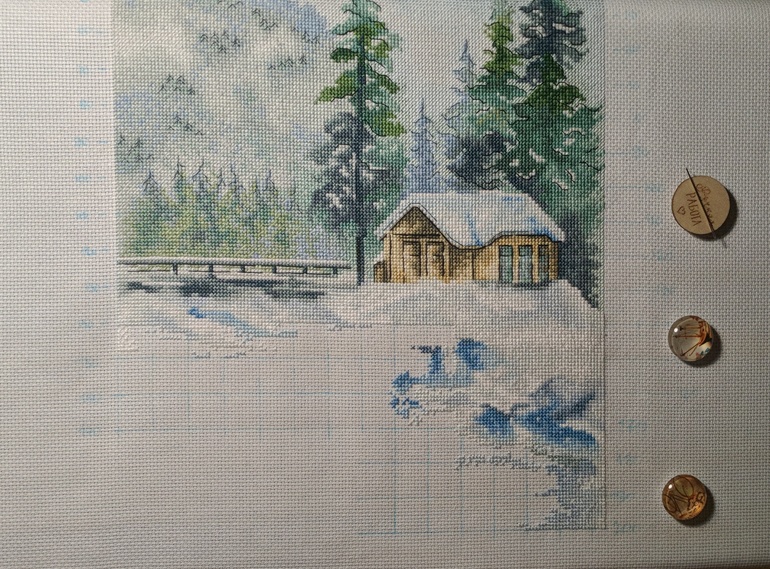 На улице весна, а на вышивке зима. Очень нравится вышивка. Цвета хорошие, насыщенные. Здорово получается