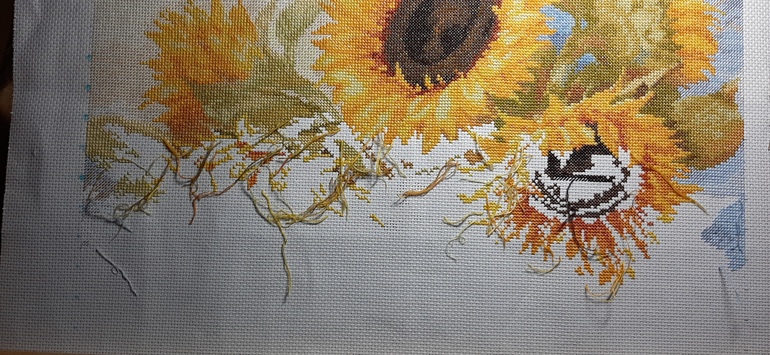 Я уже тоже мечтаю что-нибудь синее вышить :-) у меня вроде и яркое, жёлтые подсолнухи, но у меня все в последнее время коричнево-зеленое, все какое-то растительное, природное. Очень соскучилась по синему. Надо море шить...