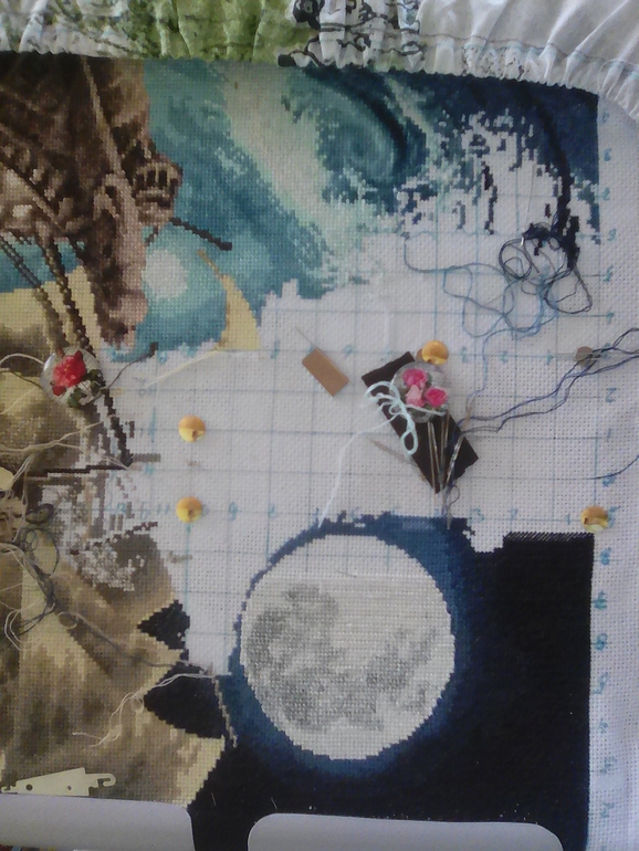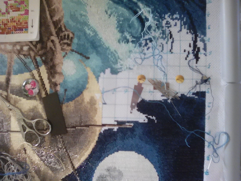 Пришлось переставить пяльца, не видно стульчик теперь целиком.