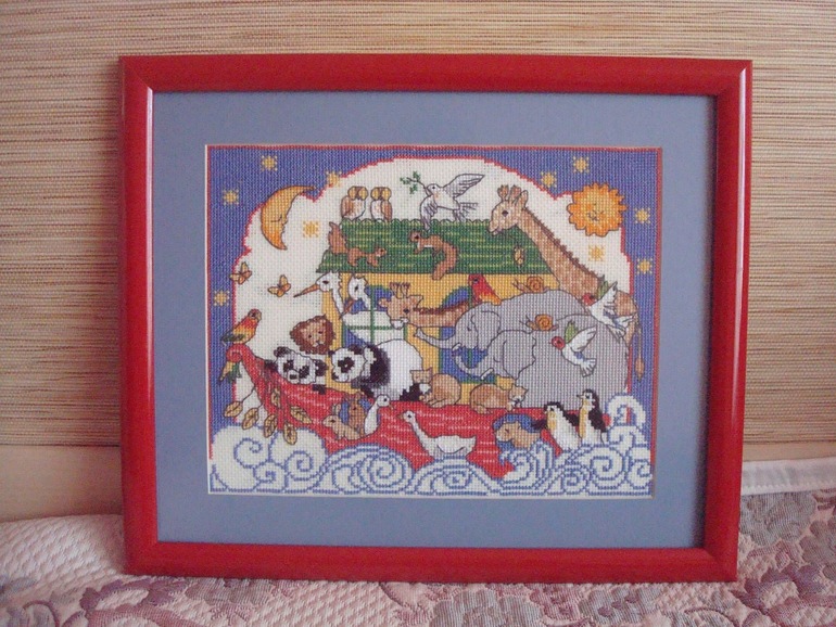 Одно время я регулярно покупала журнал « Вышиваю крестиком», и у меня скопилась приличная стопка, иногда я беру сюжеты оттуда, как и ту метрику, которая сейчас в процессе. И вот этот « Ноев ковчег» тоже из журнала ВК за 2007 год! Я вышивала его, будучи беременной старшим сыном.