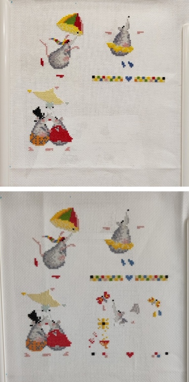 Сегодня даже видно что я навышивала, благодаря рыжему ушку на сером