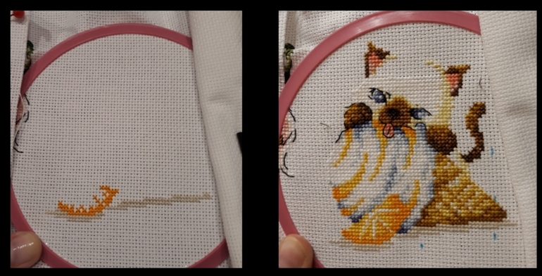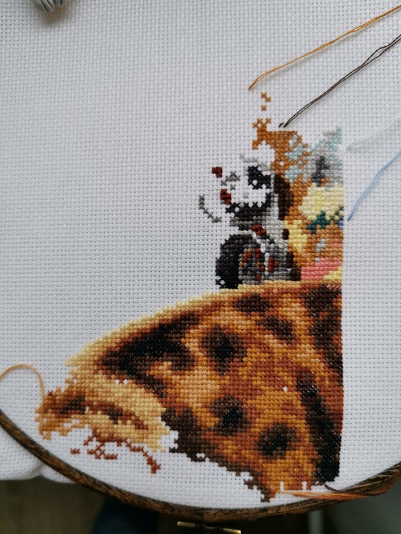 Марина, хорошо продвинулась).. С этими помощниками главное без ниток не остаться)).. Нашему они почему-то очень нравятся, стащит и грызет. А еще ловко ворует кисточки из карандашницы и тоже грызет)