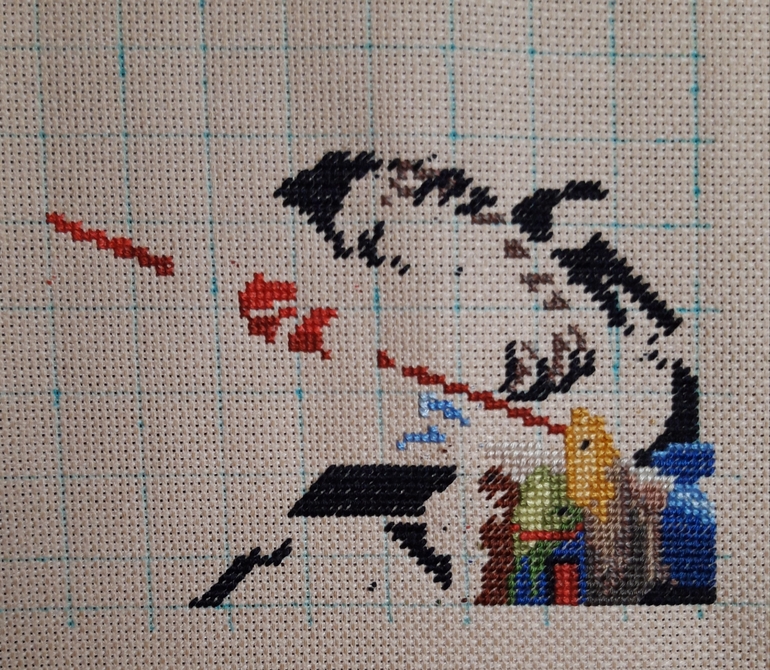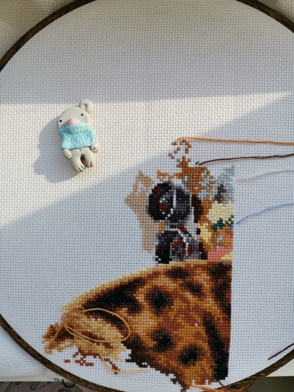 И покажу мою помощницу. Вышиваем в две руки и четыре лапы: