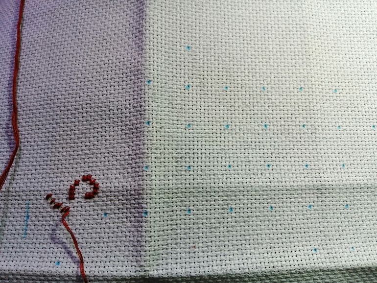 У меня пока ничего ....Растроилась ,что буду шить на канве. Думаю равномерка в тыщу раз лучше !!!Стала делать разметку. Без нее ну ни как не могу