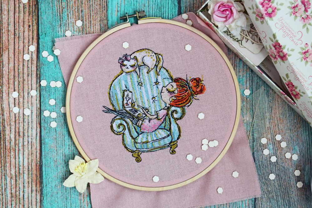 Всем привет!) Мы в прошлом году ездили на машине в Крым, ооочень довольны) Во-первых, нам нравиться ездить на машине в отпуск, дорога - уже приключение и время побыть вместе) Ну и я влюбилась в природу Крыма!) А фото любимое из Крыма - Марусин релааакс) По вышивке - я закончила!) А девочка на фото - работает! С таким вот удовольствием) Для меня эта вышивка - то, к чему я иду - удаленная работа на постоянной основе, я поняла, что это на 100% график для меня, поэтому эта вышивка будет моим символом) Больше мне с котиками вышивать нечего, поэтому я заканчиваю свое участие в этом совместнике) До встречи с вами в ВД и в зимнем!))))