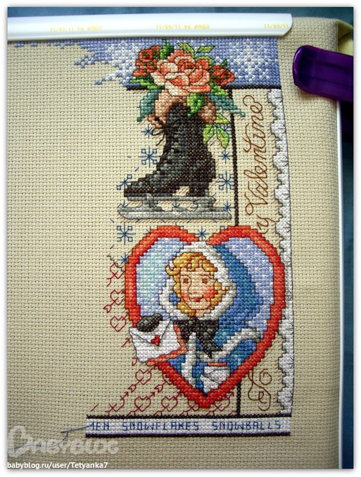 Вот мой второй кусочек... Это девочка в сердечке - как раз получилась очень февральская тема :))) Не знаю, как лучше выкладывать... все вместе или по кусочкам... Как думаете??
