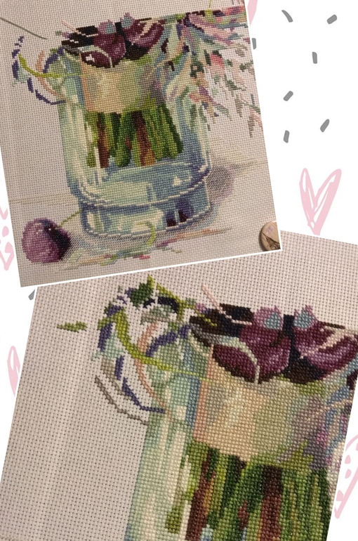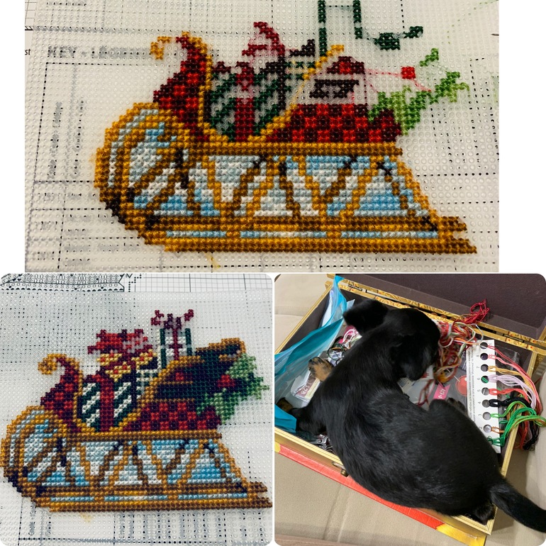 Эта вышивка почти не движется... Уделяю больше внимания зимней вышивке😊Мои было и стало