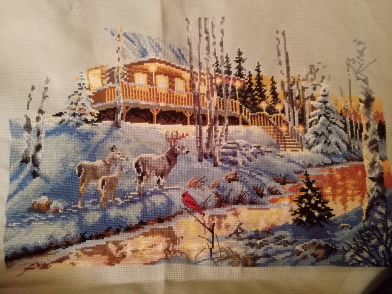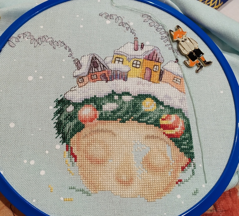 Я заболела 🤧🤒🥴 поэтому вышивала совсем чуть чуть - появился снежок ❄️❄️❄️