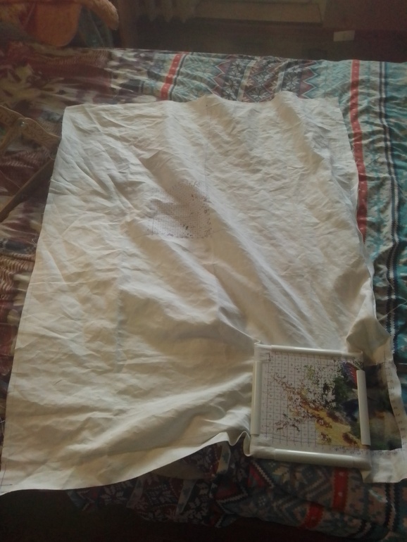 Вышиваю на 18 Аиде в полный крест нитками СХС. Размер в крестиках 670х825, в сантиметрах примерно 95х116 см будет.
