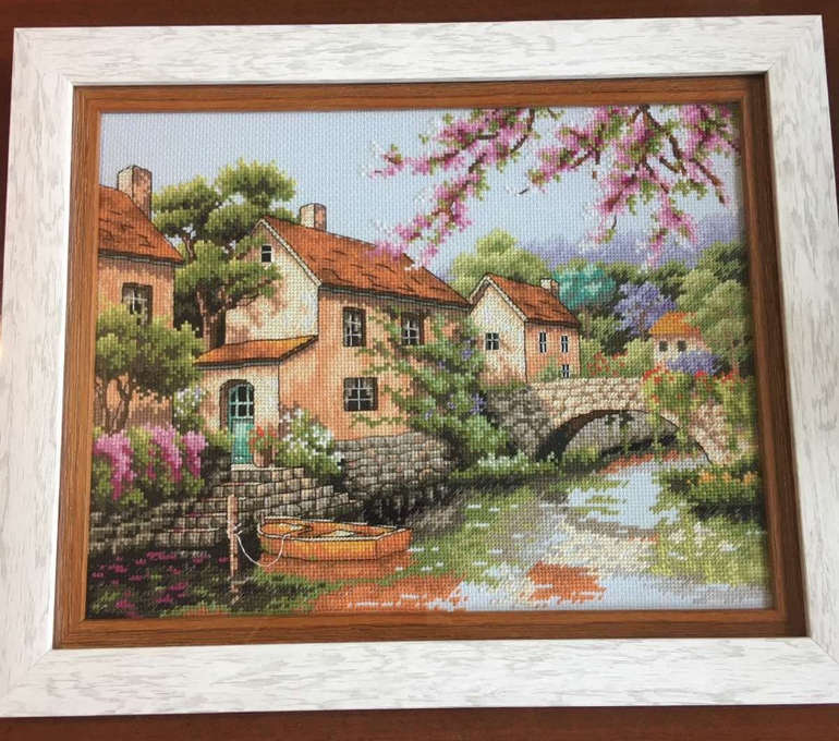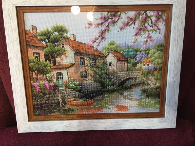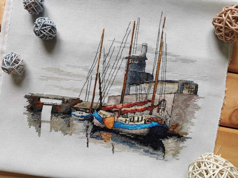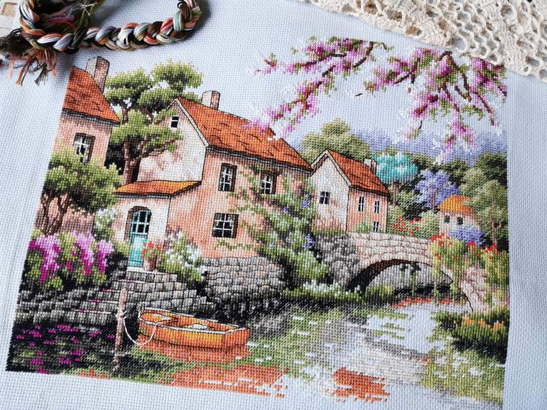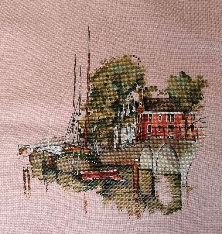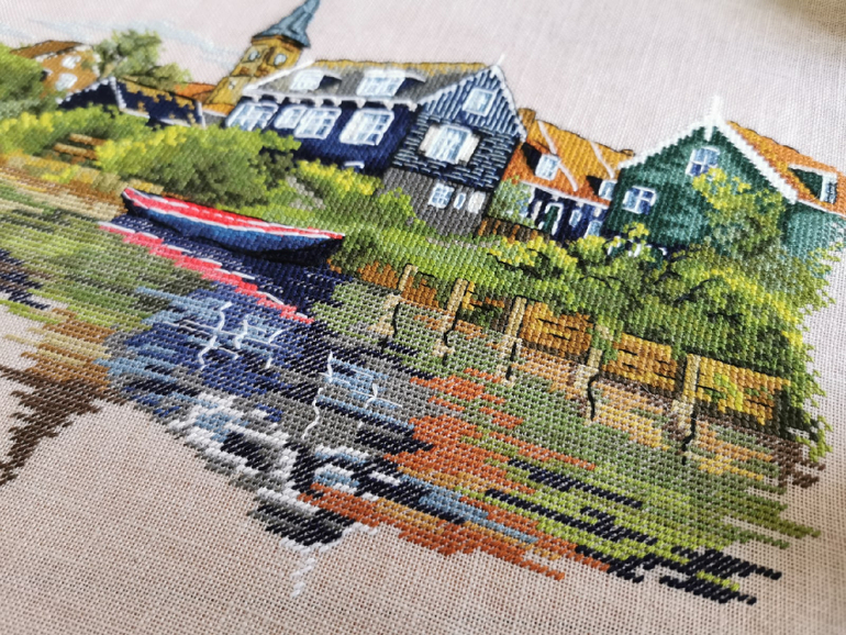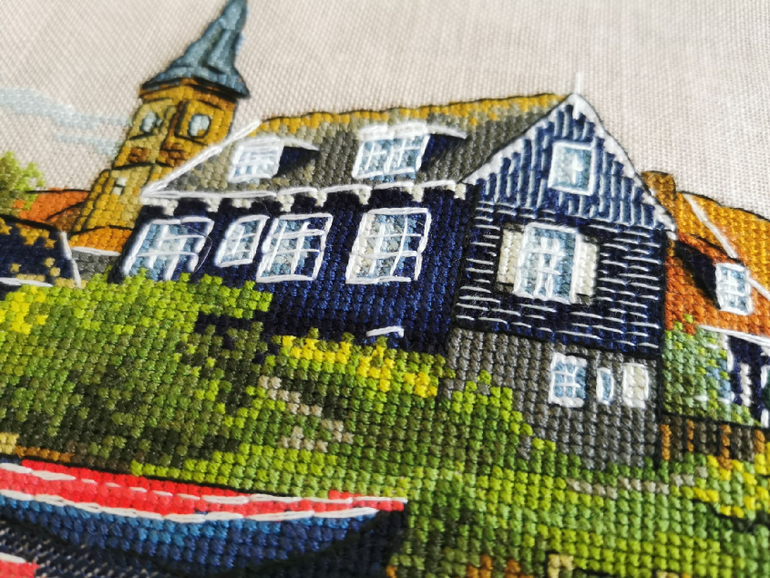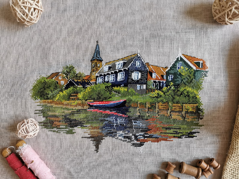 Летом начала очередную зарисовку от Ланкевич - деревню Маркен - моей ошибкой было то, что я решила вышивать ее на Пермине, не люблю эту основу, но серо-лиловый оттенок все перевесил. Еле закончила