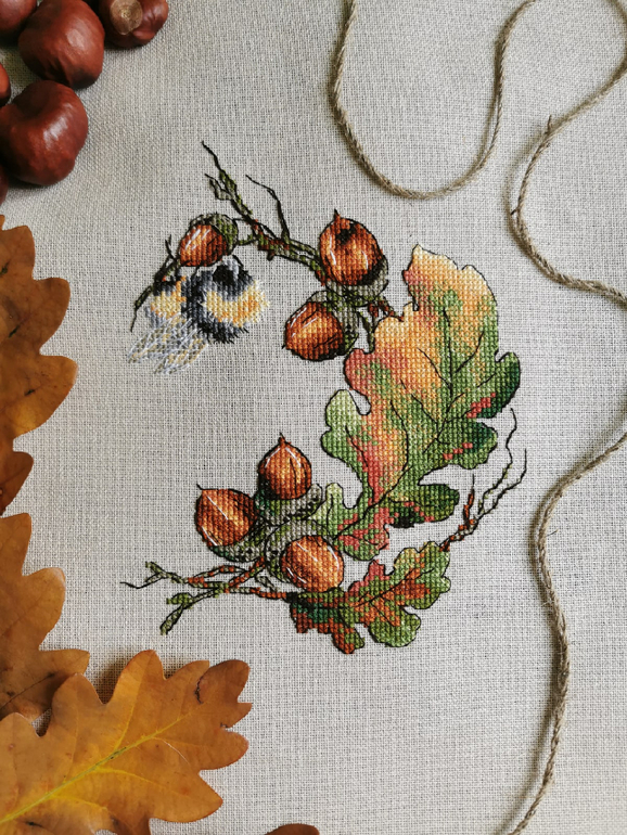 Следом за ним в скором времени был закончен осенний сюжет от МХ. В целом у меня очень приятные впечатления, но все равно вышиваю МХ я не быстро, перепроверяю, и ругаюсь благим матом, когда у меня застревает игла с бисером.