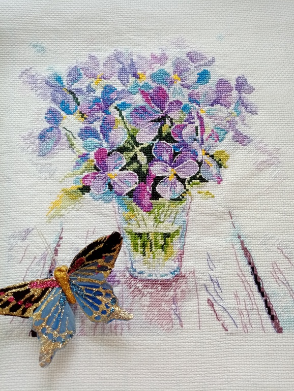 Наконец-то закончила «Голубые виолы» от Овна. Основное было вышито еще в 2019 году. Оставалось буквально пара крестиков и бэк. Ну вот не лежала душа к ним.