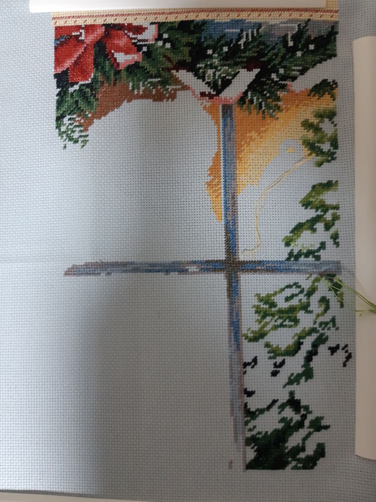 Тоже вышивала этот сапожок в прошлом году, с полукрестом намучалась😐 оконную раму у меня немного перекосило, потом долго отпаривала 🤪