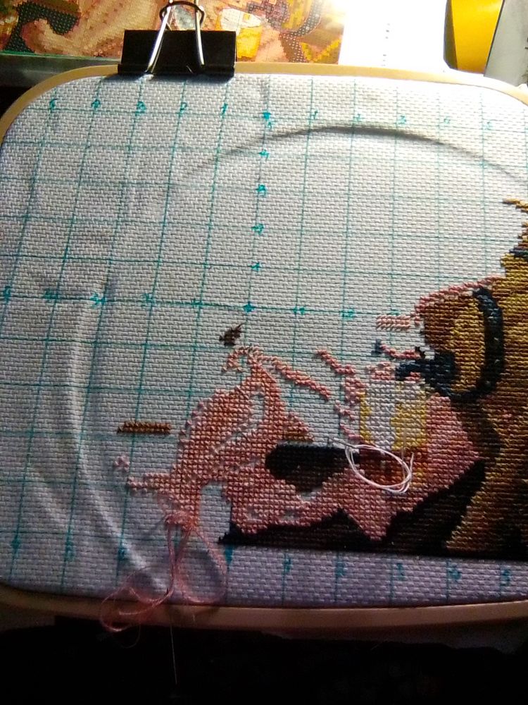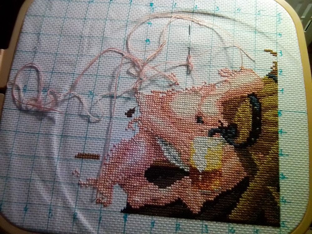Да, менять нитку, конечно, заколебаешься)).. Я поэтому в больших работах органайзер использую и число иголок равно числу цветов, чтоб туда-сюда не вставлять нитки, просто втыкаю остаток и беру другую заправленную.