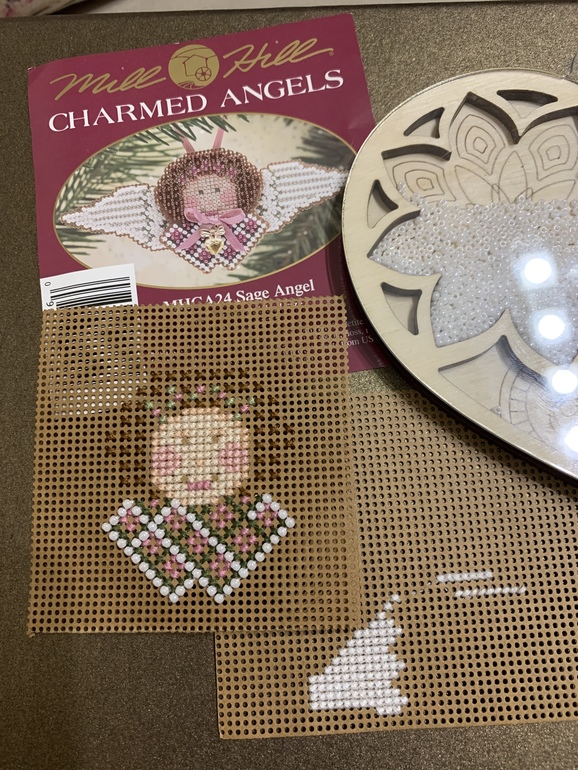 Жаль ты самого ангела уже вышила. Я бы их крестиками к нему пришила