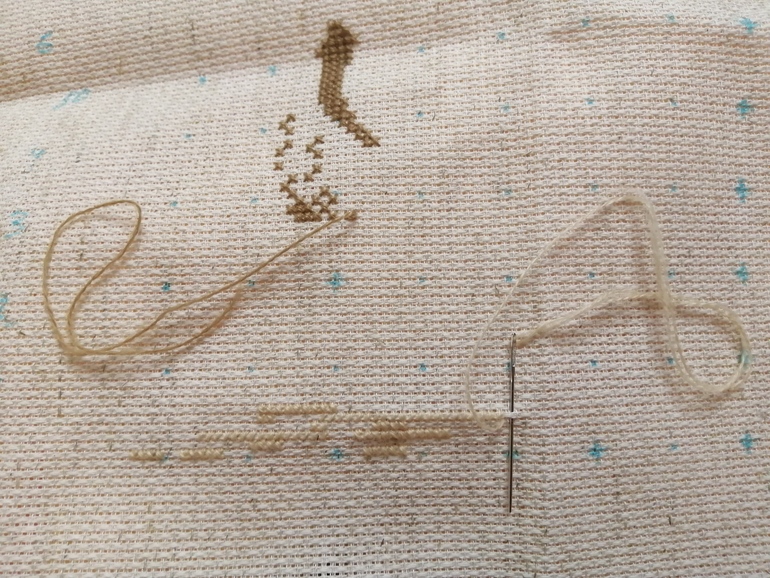 Осталось совсем немного, но быстро вышивать не получается. Утренний подъем в 6.00 не позволяет вечером уже ничего делать, засыпаю на ходу.