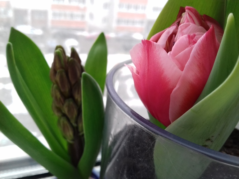 А у меня дома один тюльпанчик распустился, и такой он крошечный, просто малыш!