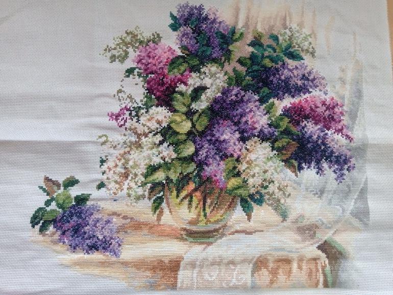 Осталось немного, всего 13%, стараюсь зкончить побыстрее и начать вышивать долгожданные тюльпаны.