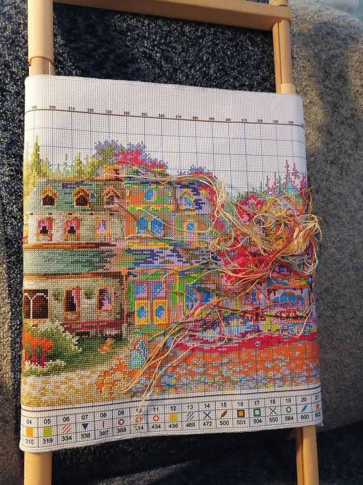Ах, какая заставка! Я чуть не забыла отчитаться 🙊 дети с обеда четверга дома, пасхальные каникулы. Фея готова в плане крестиков мулине. Крейником надо крылья вышивать и биссер ещё. Думаю сначала постирать ее. На маяке немного белого прибавилось