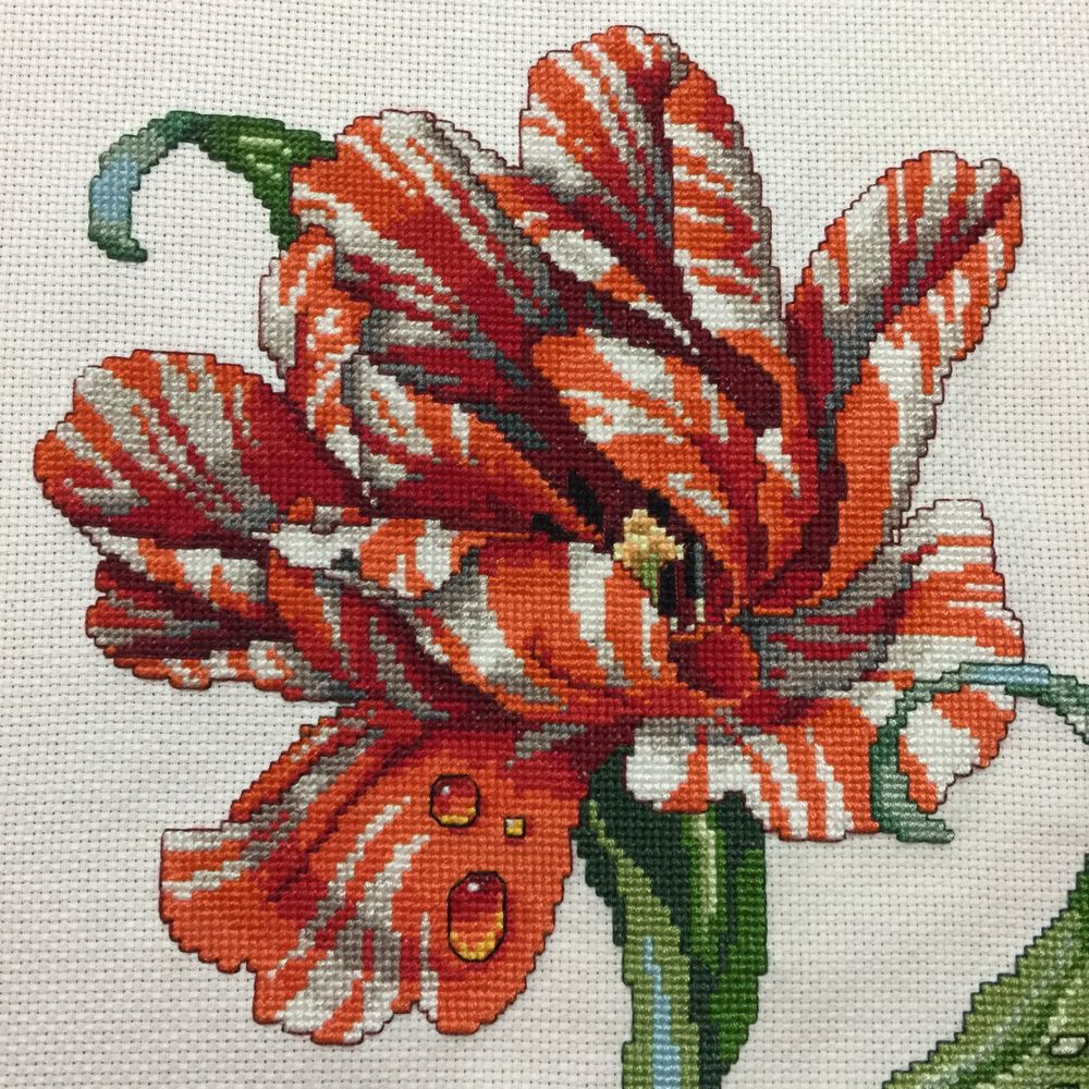Вышивка крестомВот он - виновник моих прогулов в СО "12 месяцев") Вышивала в подарок хорошей девочке, которая любит тюльпаны. Думаю оформить в сумку.