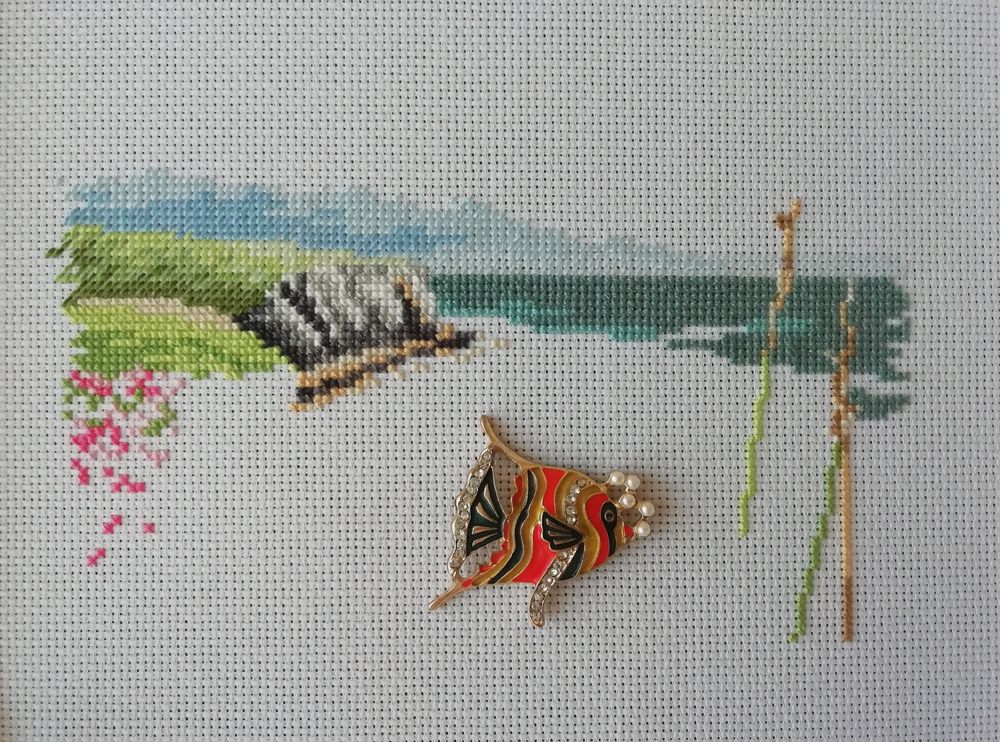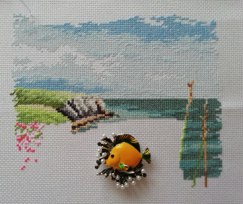 Мне кажется, что многие вышивальщицы любят рыбалку, потому что это процесс медитативный, как и вышивка. Я сама ловить не люблю, жалко мне их и вообще я веган-второгодник ( иногда позволяю себе вредности), но рядом посидеть и посмотреть на воду с удовольствием.