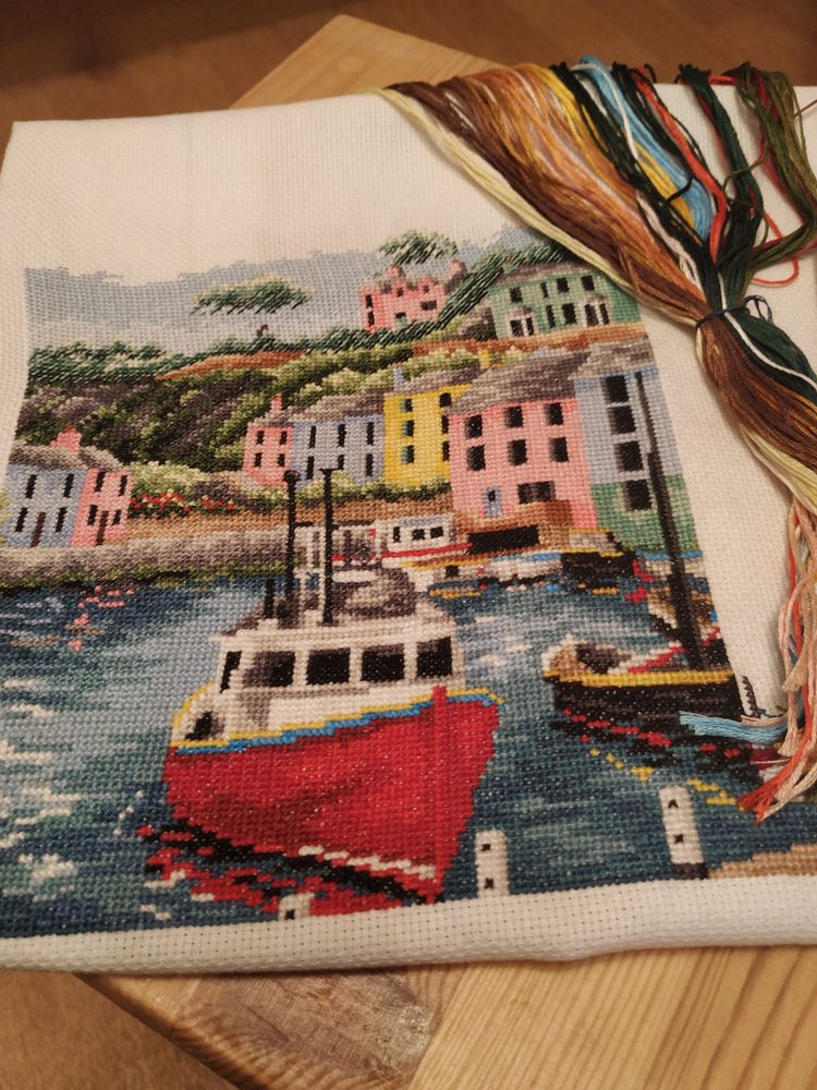 Ирина вышивала прибрежный городок с разноцветными домами, тоже желаем скорейшего завершения