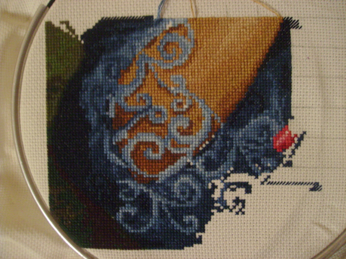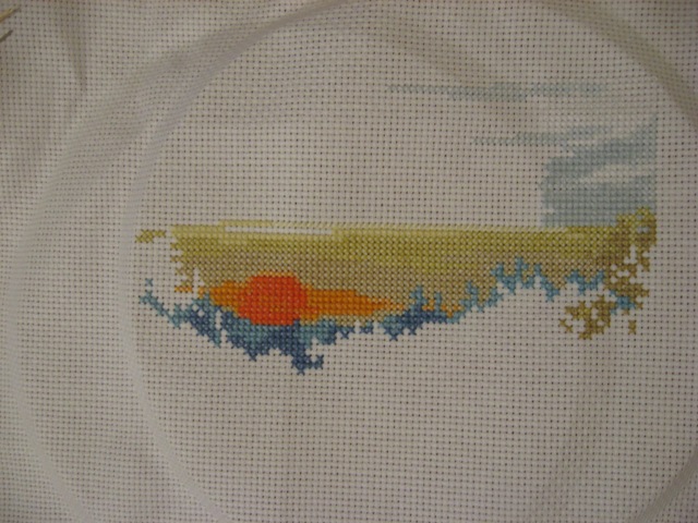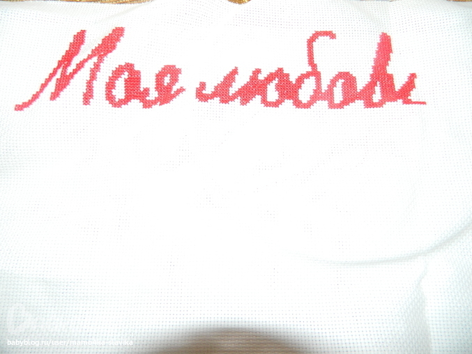 В роддом мне мама привезла маленькую вышивку львенка (так как роды на 16 августа назначили), но так до сих пор и не довышила, хотя там немного осталось, не идет он у меня.. набор ужасный, канва очень мягкая, нитки плохие, между крестиками везде все просвечивает.. вобщем валяется..