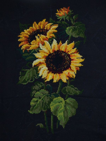 Когда я увидела знаменитые риолисовские маки и подсолнухи на черной канве - просто "запала"... Купила в инет-магазине, очень долго ждала посылку, а потом взялась! Вот такими они у меня получились: