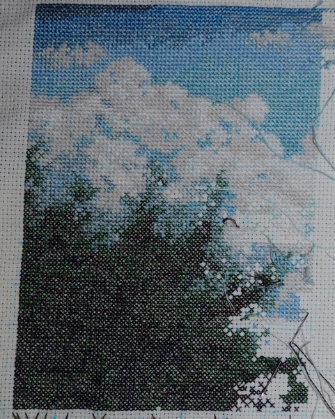 Спасибо)) Медленно берёзка растёт. Не люблю одним цветом большые участки вышивать. Скучно это))