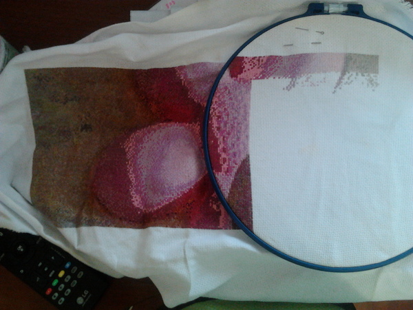 Вышивка продвигается, вот и цветочек почти видно))) Дочурке скорейшего выздоровления...