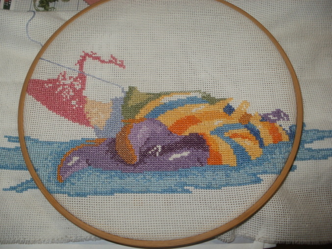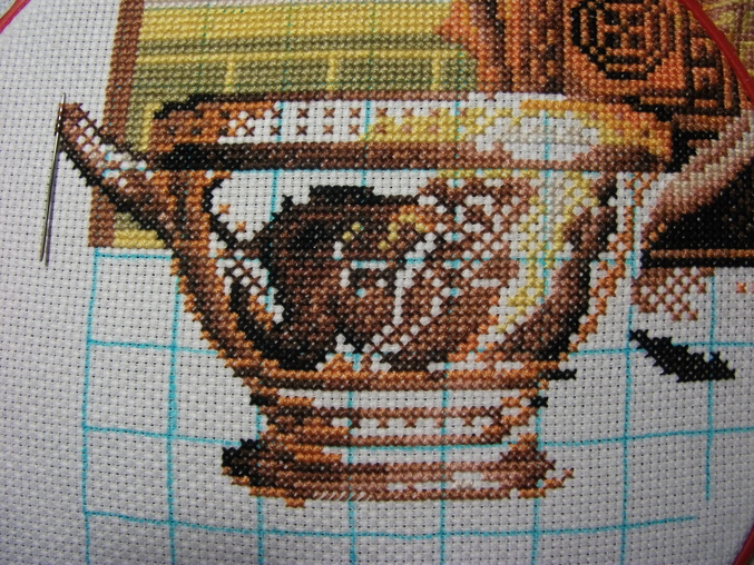 Несмотря на то, что не только у моих лезут зубы, за вчера нам удалось вышить 20515 крестиков, что ни разу не рекорд, потому что другие дни показывали, что мы можем больше! И готовых работ не было. Вернее, были, но одна за позавчера, это Чайничек от Ирины и очаровательная сумочка для заколок от Lea :)