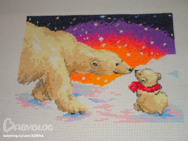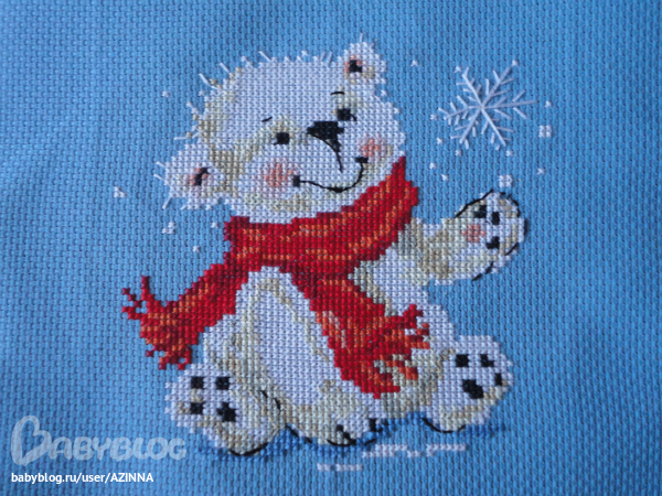 Этот медвежонок от Алисы моя вторая работа))))Когда я Мишку вышивала не знала,что верхние стежки крестика должны в одну сторону смотреть.