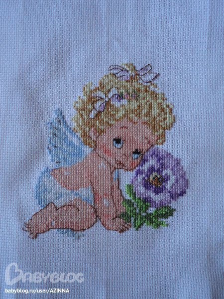 Вышивка крестомНачалось в октябре 2011 года с Ангелочка от Алисы.Тяжело мне далась моя первая работа)))))Я ее в поезде вышивать начала по дороге из Москвы в Тверь.Как вспоминаю бэк.......как я не старалась,все равно не получалось...Работу в готовом виде я не сфоткала,остался только вот этот немного мятый "снимок"