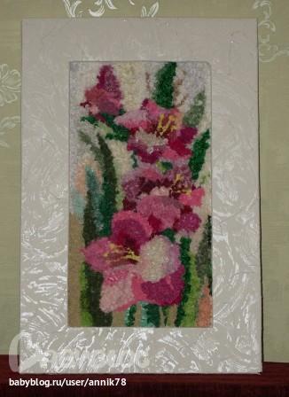 Моя старшенькая ходит в дом творчества на кружок текстильной живописи. Педагог замечательный, работают в разных техниках. Рисунок и палитру подбирают сами, педагог старается не вмешиваться, только подсказывает. Сегодня принесла показать две свои работы. Что-то похожее на коврики, только основа - пенопласт.